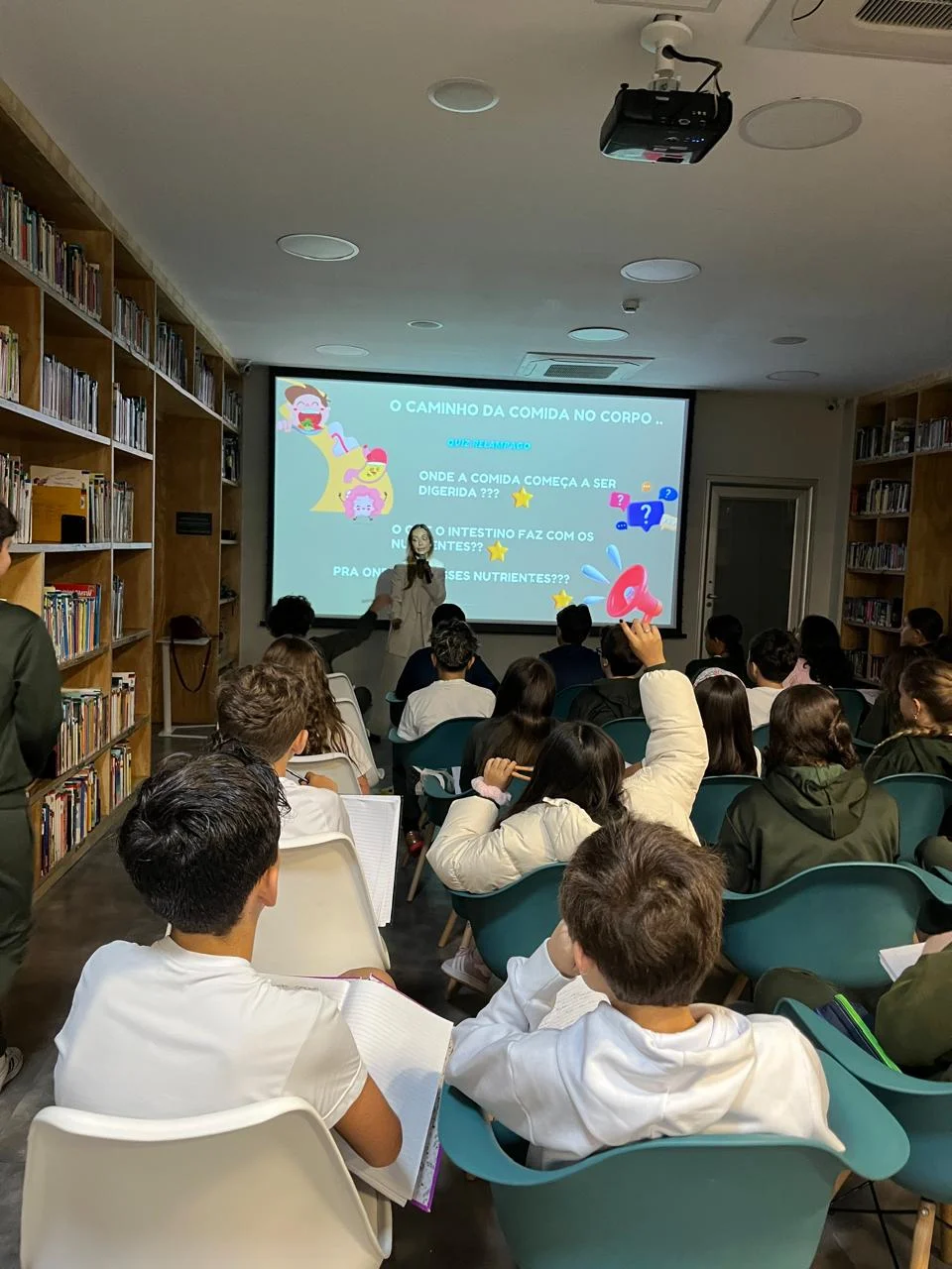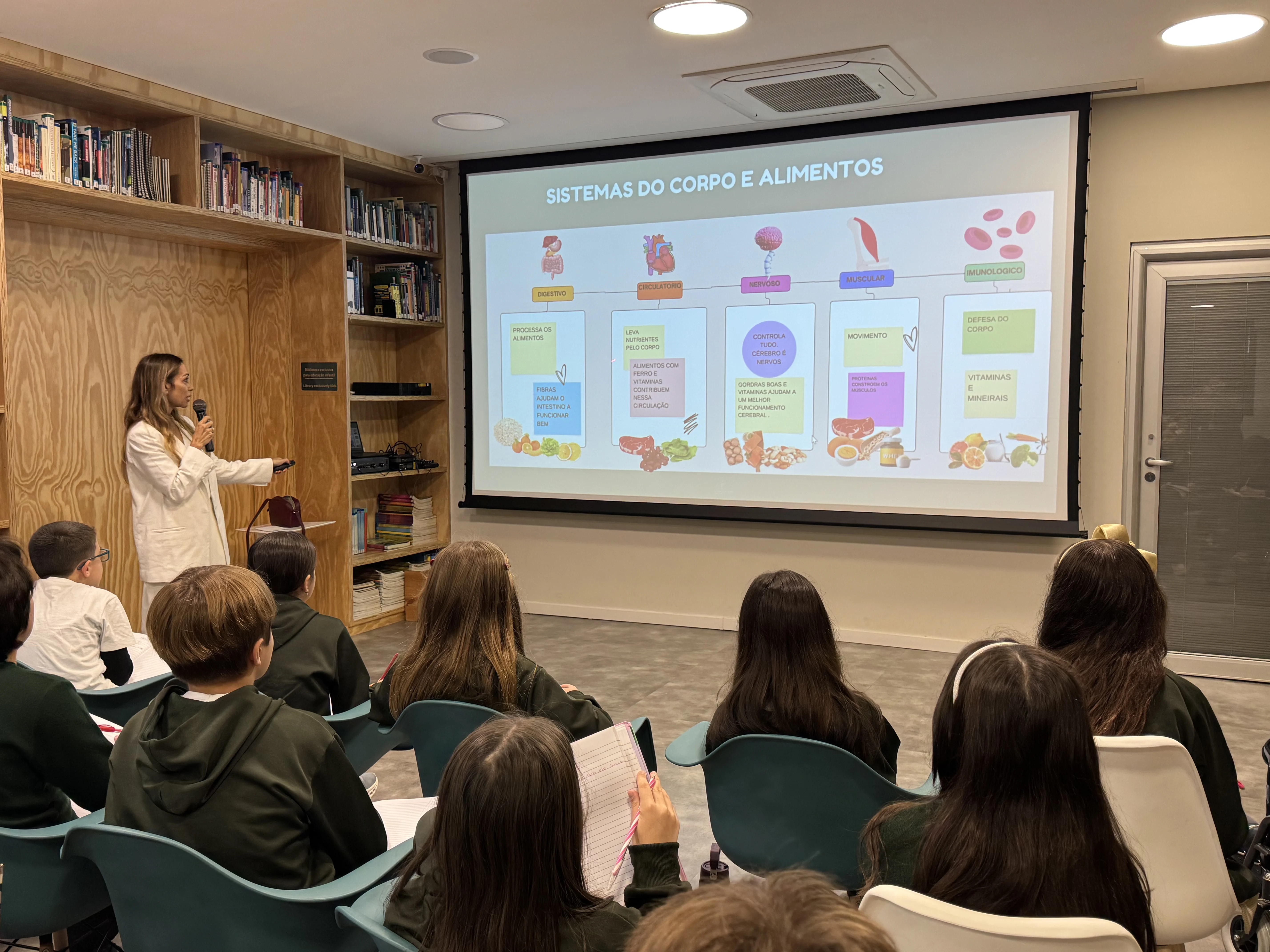 Como parte da nossa Unidade de Investigação “Quem Somos”, tivemos o prazer de receber Juliana, nutricionista e mãe de um aluno do 5º ano do Ensino Fundamental.Durante a sua visita, as crianças participaram numa conversa leve e significativa sobre alimentação saudável, os diferentes grupos alimentares e como a nutrição está intimamente ligada aos cuidados com o nosso corpo e bem-estar geral.Experiências como esta enriquecem a vida escolar, conectando os alunos ao mundo real por meio de interações valiosas com a nossa comunidade escolar.Obrigado, Juliana, por partilhar o seu tempo e conhecimento connosco!