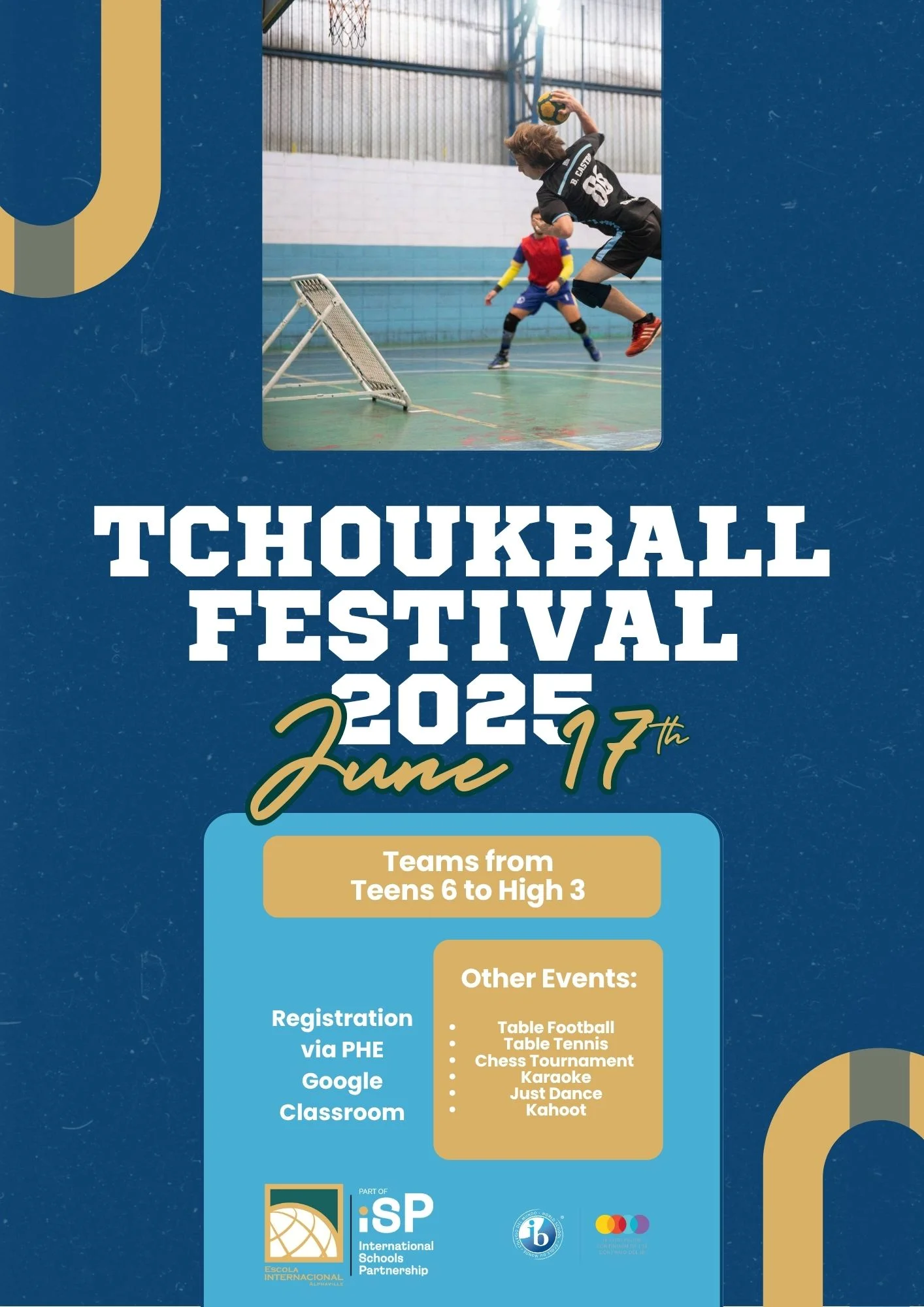 Na terça-feira, 17 de junho, realizaremos um Festival de Tchoukball para todos os alunos do T6 ao H3 e, no dia 18, para todos os alunos do J4!O que é Tchoukball?Tchoukball é um esporte coletivo rápido e sem contato físico que combina elementos do handebol e do vôlei. O objetivo é lançar a bola em uma estrutura de rebote para que ela salte e caia na quadra sem que o outro time a pegue.Não há contato físico, nem bloqueios, e os jogadores podem marcar pontos em qualquer extremidade da quadra, o que torna o jogo rápido, estratégico e justo. Ele incentiva o raciocínio rápido, o movimento constante e, acima de tudo, o trabalho em equipe.O tchoukball é frequentemente chamado de “esporte da paz” porque promove o respeito, a inclusão e a cooperação, em vez da agressividade. É uma ótima oportunidade para desenvolver novas habilidades, como comunicação, agilidade, coordenação e tomada de decisão, enquanto se diverte!Será um dia cheio de ação, energia e boas vibrações.